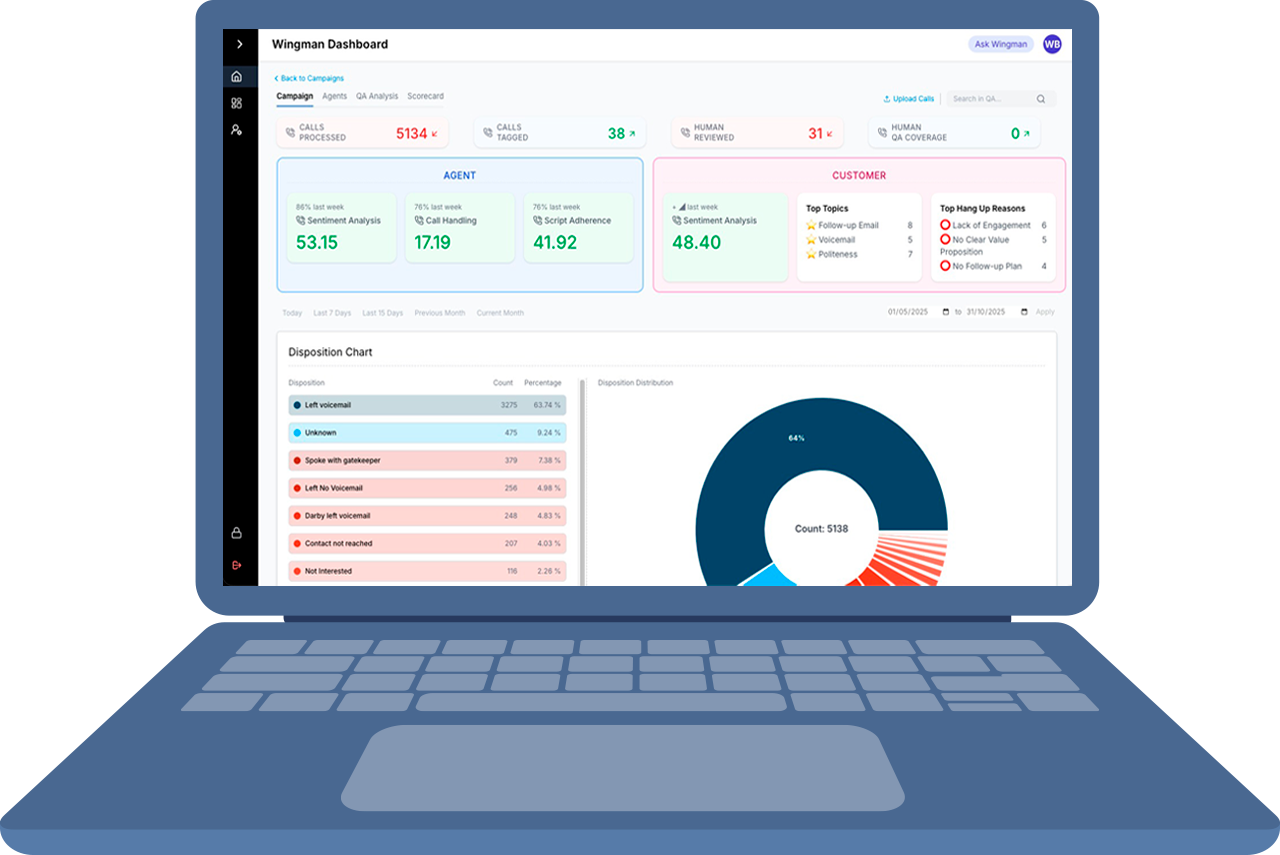 AI-powered compliance, performance, and sentiment analysis with human validation in every call.